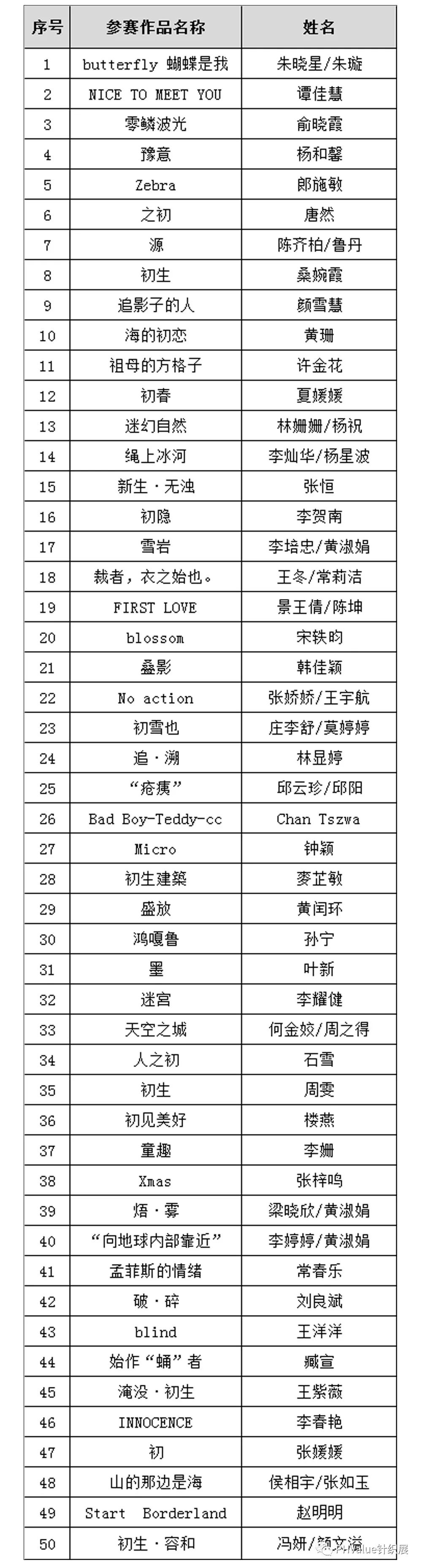 經過本次初評,以下50組優(you) 秀作品獲得入圍獎。接下來,經過再次的嚴(yan) 格篩選,將有20組作品進入最終決(jue) 賽。進入決(jue) 賽的20組作品將於(yu) 近期公布,敬請期待!