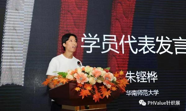 結業(ye) 儀(yi) 式上,來自華南師範大學的朱鏗樺代表學員發言,他表示:“作為(wei) 一名高校的服裝設計專(zhuan) 業(ye) 教師,提升對伟德国际英国工藝的理解和掌握實操技能是非常重要的,相信很多參與(yu) 培訓的教師學員都有和我同樣的感受,這也是我們(men) 參加此次伟德国际英国設計工藝培訓班的主要目的,對我們(men) 今後在伟德国际英国設計與(yu) 工藝課程的教學方麵有很大的幫助。