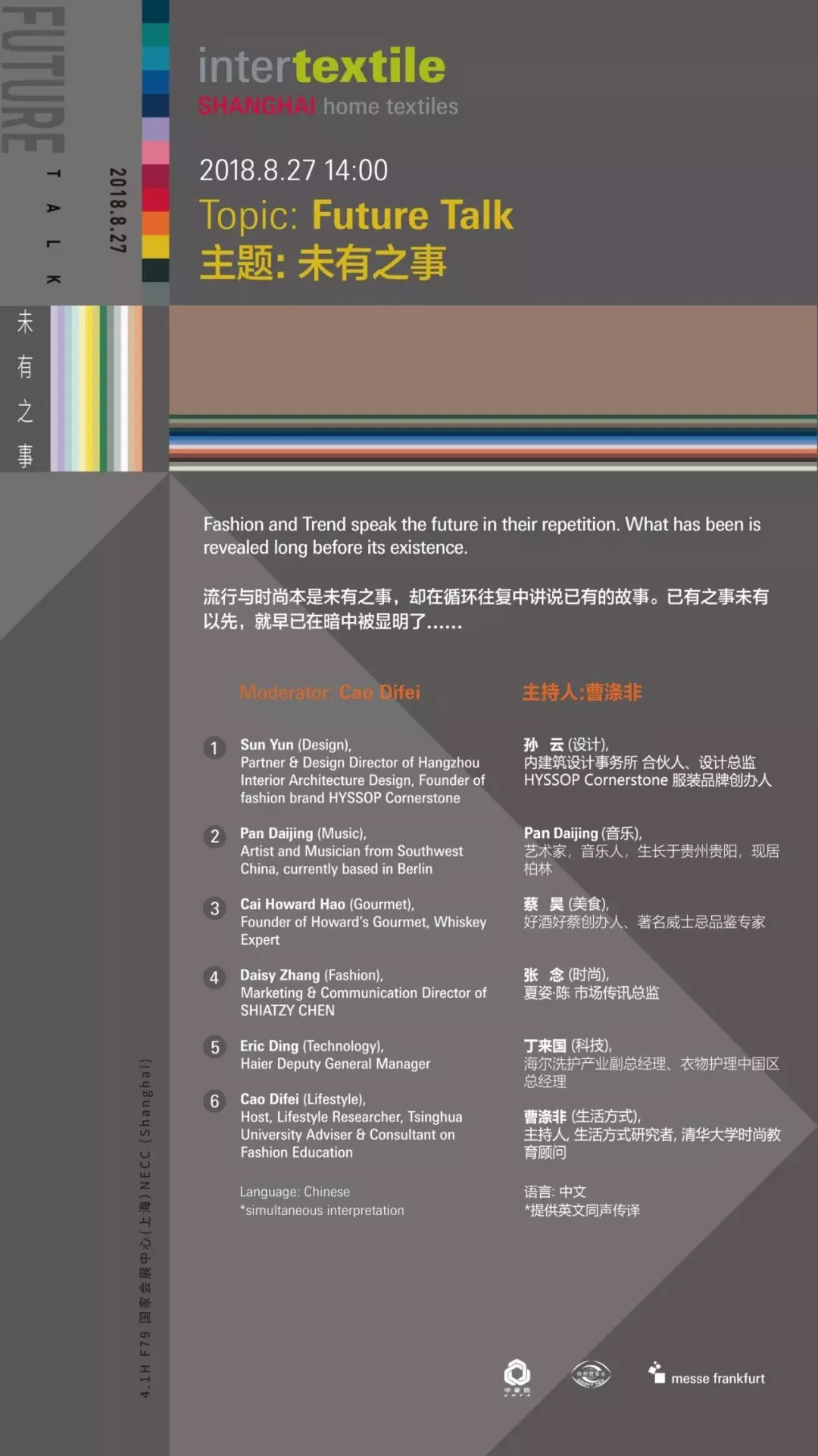 想聽他們(men) 對於(yu) “未來生活方式的改變”怎麽(me) 說,怎麽(me) 議,趕緊拿起手機抓緊最後的幾天時間進行微信預登記,來到現場成為(wei) 家紡展跨界的見證者!