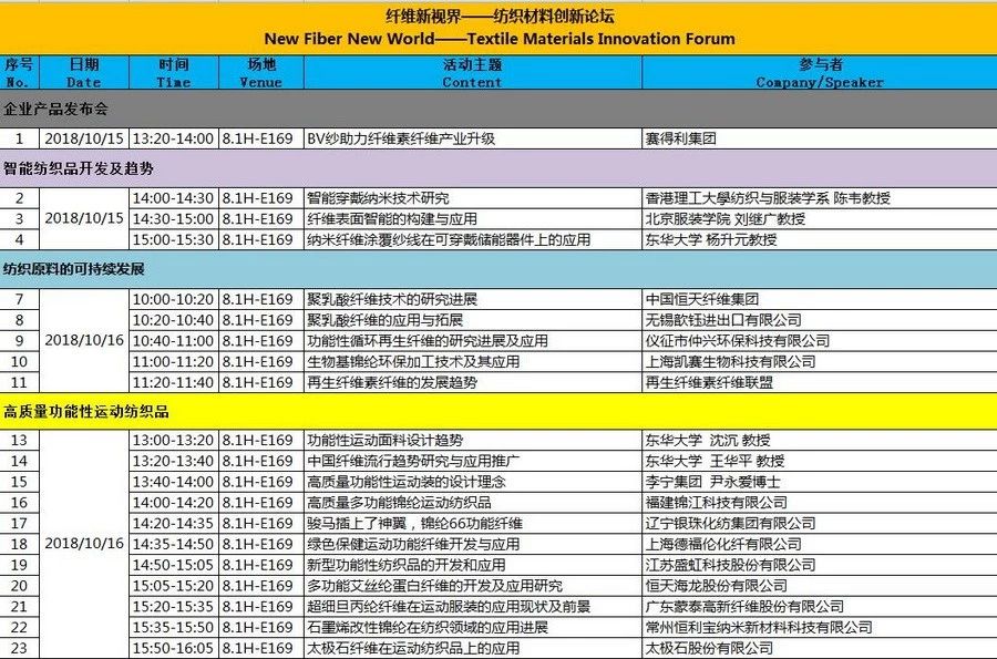 本屆紗線展功能化纖區即將呈現哪些新技術、新材料和新趨勢?請關注“纖維新視界·紡織材料創新論壇”日程,“中國纖維流行趨勢2018/2019概念區”以及“中國纖維流行趨勢”入選企業區。