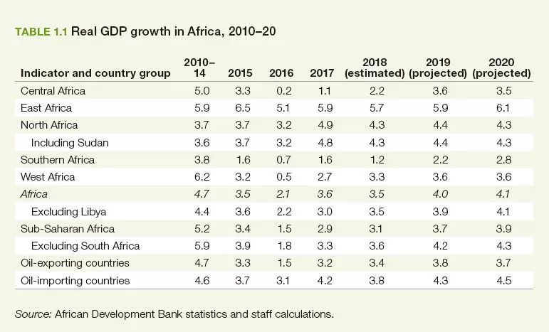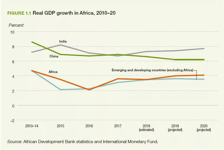 非洲大陸2018年GDP平均增長率3.5%,與(yu) 2017年持平,比2016年提高1.4%。非洲的GDP增長期望雖然不如中國和印度高企,但是仍領先於(yu) 其他在新興(xing) 和發展經濟體(ti) 中。