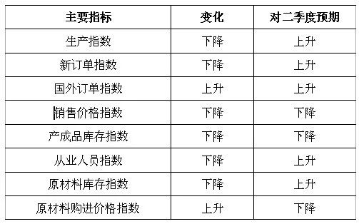 整體(ti) 來看,受市場放緩等因素影響,我國紡織行業(ye) 總體(ti) 景氣指數符合預期。而隨著國內(nei) 市場環境逐漸改善、相關(guan) 政策發揮政策效果等,二季度或將有回升空間,企業(ye) 對二季度運行信心有所增強。具體(ti) ,2019年一季度較2018年四季度的主要分項指標變化情況及對二季度的預期如下: