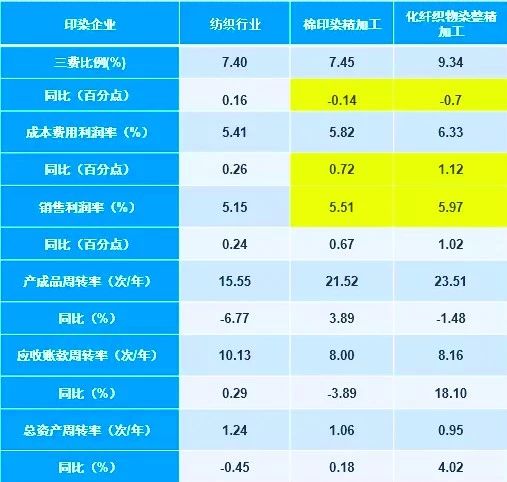 2018年印染行業運行質量指標