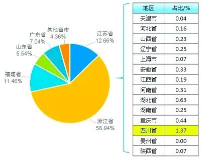 2018年主要省市印染布產量占比情況
