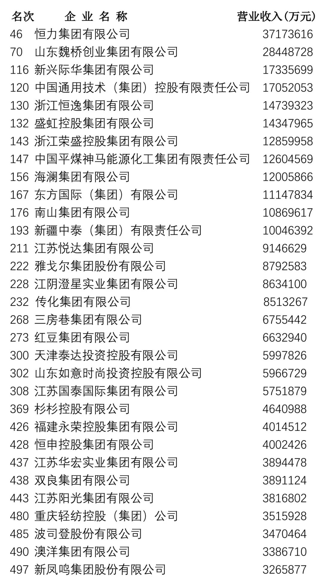 9月1日,中國企業(ye) 聯合會(hui) 、中國企業(ye) 家協會(hui) 發布2019年中國企業(ye) 500強榜單,包括製造業(ye) 企業(ye) 244家,服務業(ye) 企業(ye) 173家。記者經過查詢榜單,梳理出紡織服裝以及相關(guan) 企業(ye) 31家。他們(men) 是: