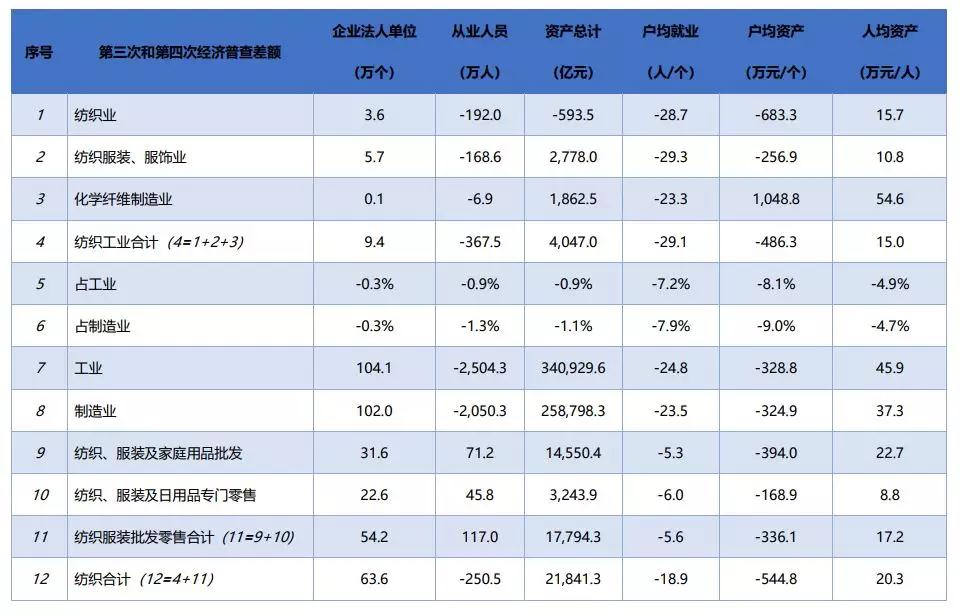 11月20日,國家統計局於(yu) 發布了第四次全國經濟普查(2018)數據,此次普查主要目的是全麵調查我國第二產(chan) 業(ye) 和第三產(chan) 業(ye) 的發展規模、布局和效益,了解產(chan) 業(ye) 組織、產(chan) 業(ye) 結構、產(chan) 業(ye) 技術、產(chan) 業(ye) 形態的現狀以及各生產(chan) 要素的構成,普查標準時點為(wei) 2018年12月31日,普查時期資料為(wei) 2018年年度資料。本文根據此次國家統計局發布的數據對我國紡織行業(ye) 5年來的發展情況進行了簡要分析。