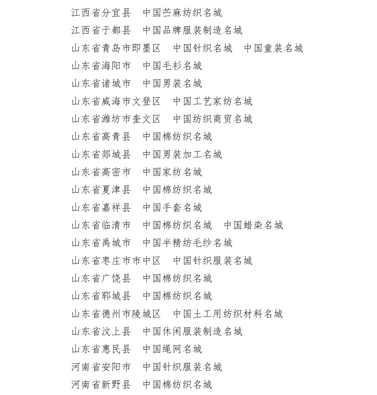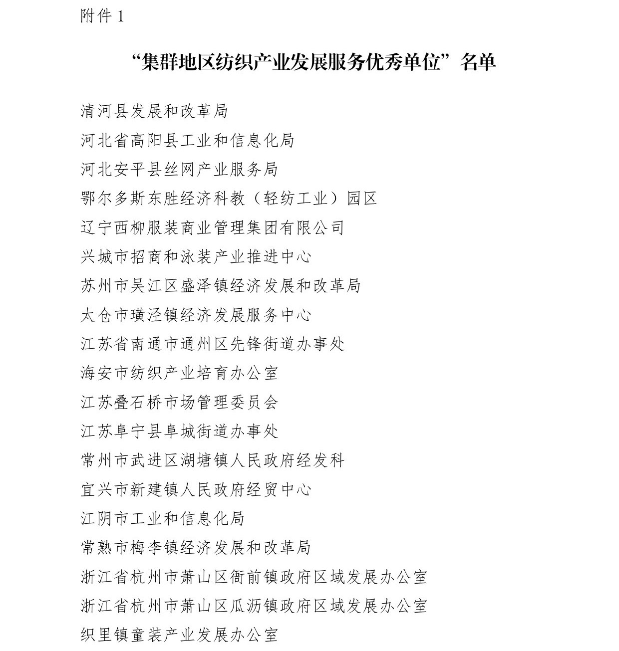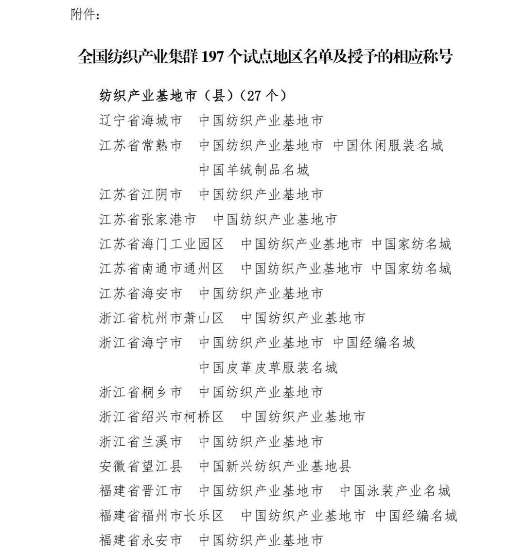 中紡聯副會長楊紀朝宣讀“關於確定遼寧省海城市等197個地區為全國紡織產業集群試點地區的決定”並頒獎。