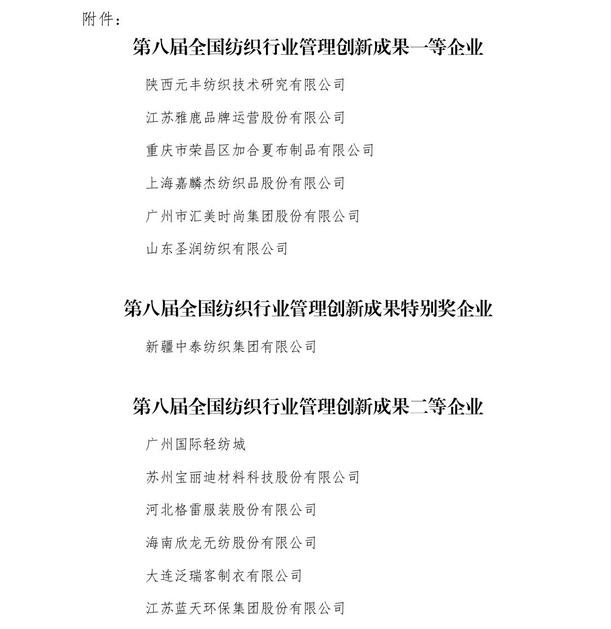 中紡聯副會長徐迎新宣讀“關於發布推廣第八屆全國紡織行業管理創新成果的決定”並頒獎。