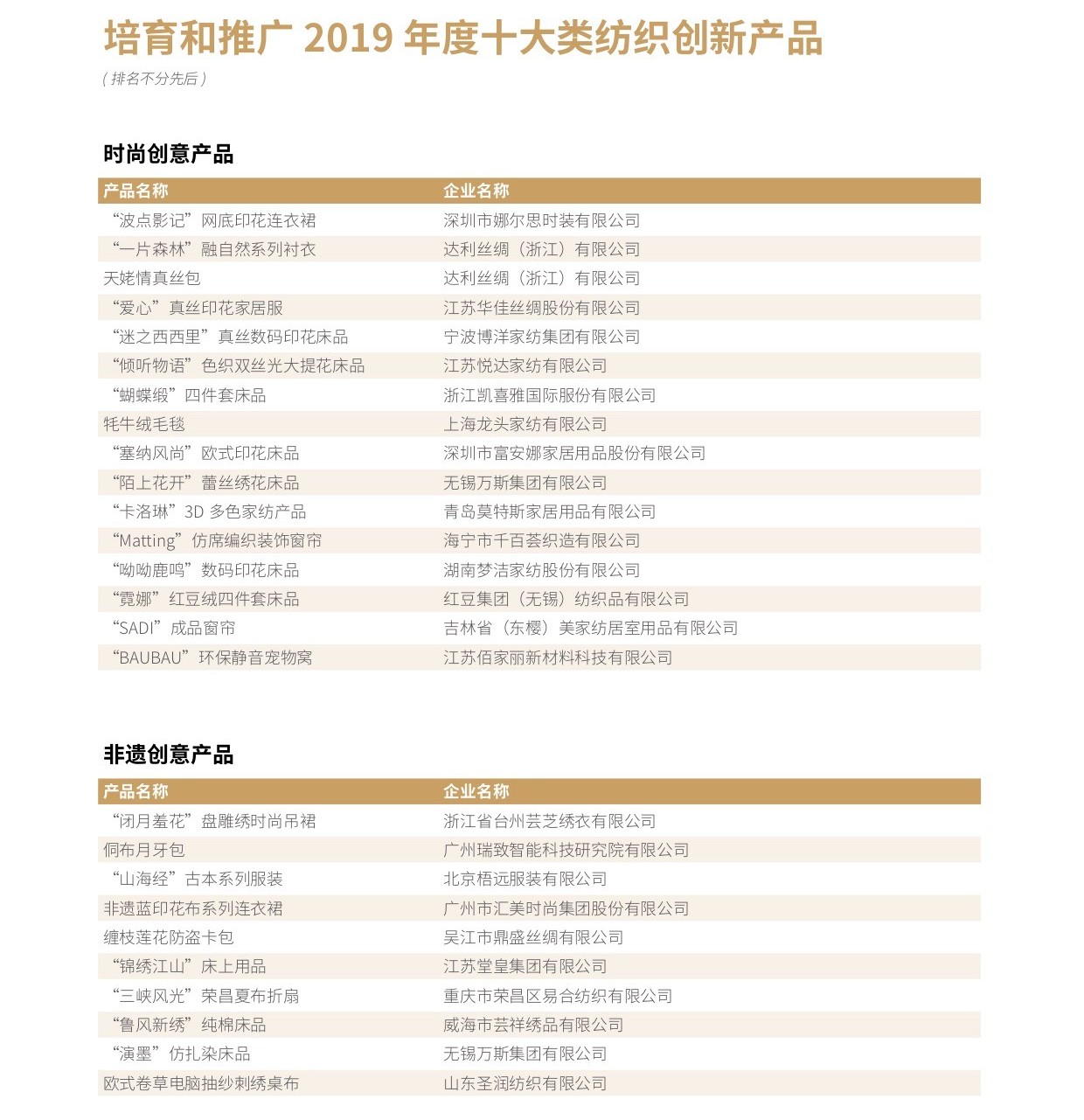 中紡聯副會長陳大鵬宣讀“關於授予2019年度十大類紡織創新產品榮譽稱號的決定”並頒獎。