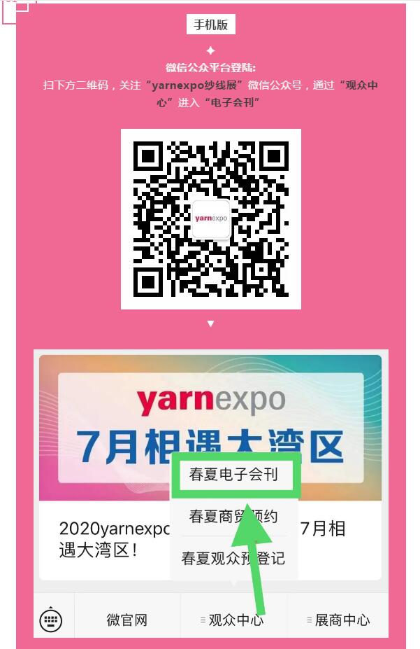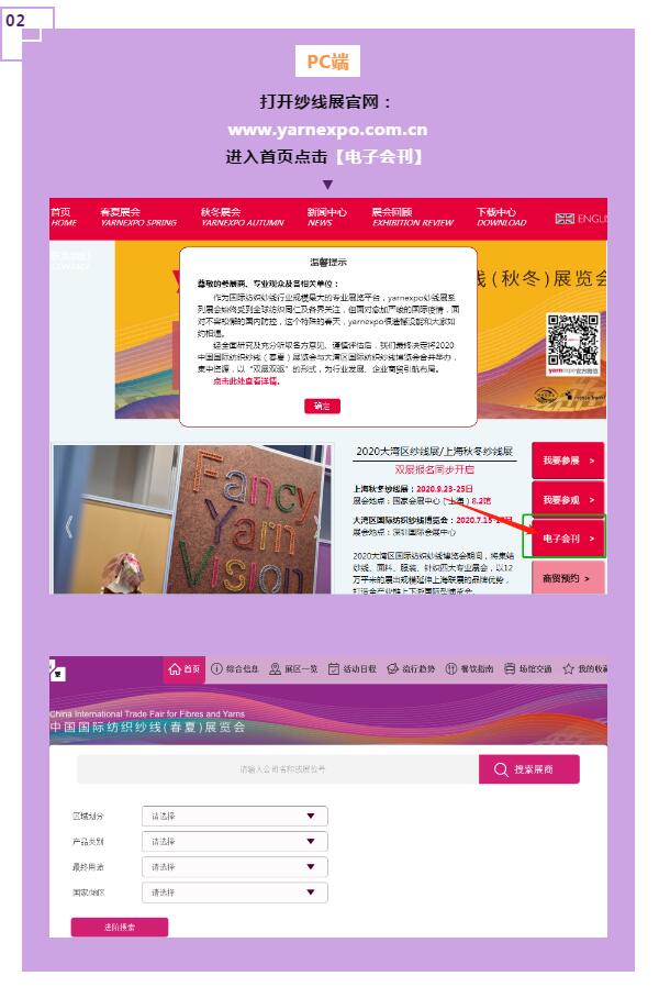 繼2020yarnexpo春夏紗線展"參展商名單"、"在線商貿預約"線上功能開通,有展會(hui) “小百科”之稱的電子會(hui) 刊也已上線,展商、觀眾(zhong) 可以隨時線上了解相關(guan) 展品、展商信息,進行"一對一"對接。