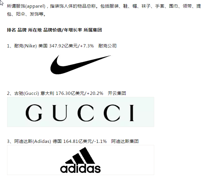 英國品牌評估機構“品牌金融”(Brand Finance)發布“2020全球最有價(jia) 值的50個(ge) 服飾品牌”排行榜(Brand Finance Apparel 50 2020)。運動品牌耐克蟬聯第一名,奢侈品牌古馳躍居第二位,運動品牌阿迪達斯名列第三位。中國香港珠寶品牌周大福升至第15位,中國運動品牌安踏升至第18位。