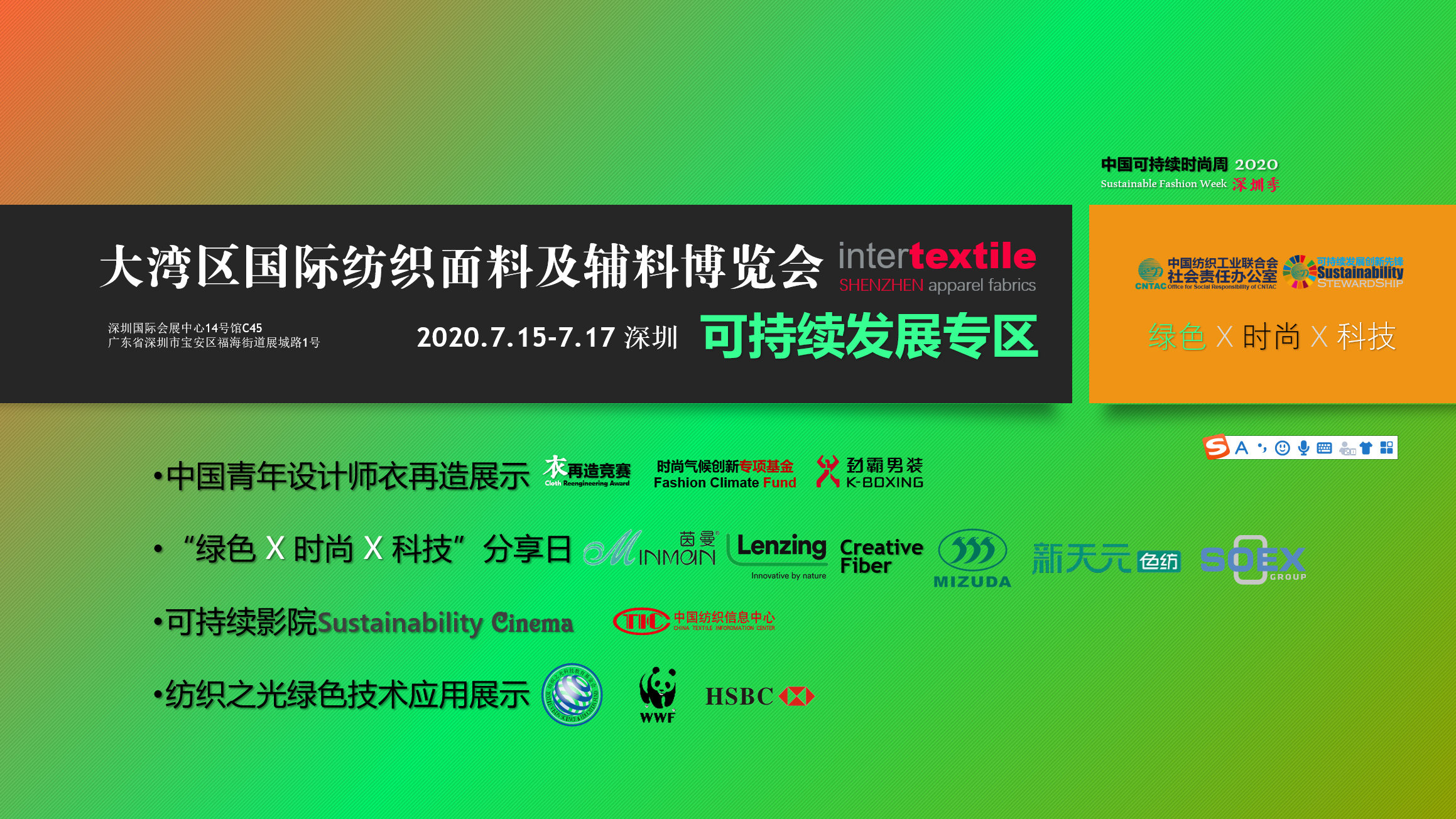 大灣區麵輔料展是中國經濟從(cong) 疫情中恢複穩定後首批中國紡織服裝行業(ye) 大型產(chan) 業(ye) 活動之一,更肩負引航企業(ye) 發展、助力企業(ye) 成長的重任,展會(hui) 現場特別設立了可持續發展專(zhuan) 區,並舉(ju) 辦主題為(wei) :綠色 X 時尚 X 科技的發布交流活動。可持續發展專(zhuan) 區由中國紡織工業(ye) 聯合會(hui) 社會(hui) 責任辦公室聯手大灣區麵輔料展設立,並納入“2020中國可持續時尚周-深圳季”活動。
