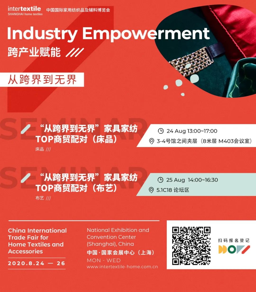 您現在的位置是:首頁 > 要聞 2020intertextile家紡展四大版塊活動重磅預告! 來源:intertextile家紡展 發布日期:2020-08-19 字體: 【小】 【中】 【大】 3天展會(hui) 精彩活動全覆蓋 時尚潮流、設計趨勢、行業(ye) 預測~ 帶你 發掘各類設計創意 展現最新美學與(yu) 材料趨勢 共討未來家居行業(ye) 走勢 設計風向標、渠道放大鏡 跨產(chan) 業(ye) 賦能、技術最前線 四大板塊活動重磅打造 提前預告已正式發布 快來提前預登記 現場精彩活動 等你來參與(yu) ! 分享: 熱門文章: 2025intertextile春夏 | “友禮”同享齊觀展... [2025-02-19] 2024年我國紡織行業經濟運行總體平穩 [2025-02-17] 聚焦綠色智慧融合 展示產業用紡織品新趨勢 [2025-02-11] 響應政策 落實服務 | PH Value義烏展全力“備戰”中 [2025-02-11] 【亮星季】第一期正式開啟 | 商貿先行,品質好禮享不停 [2025-02-10] 展會直通車