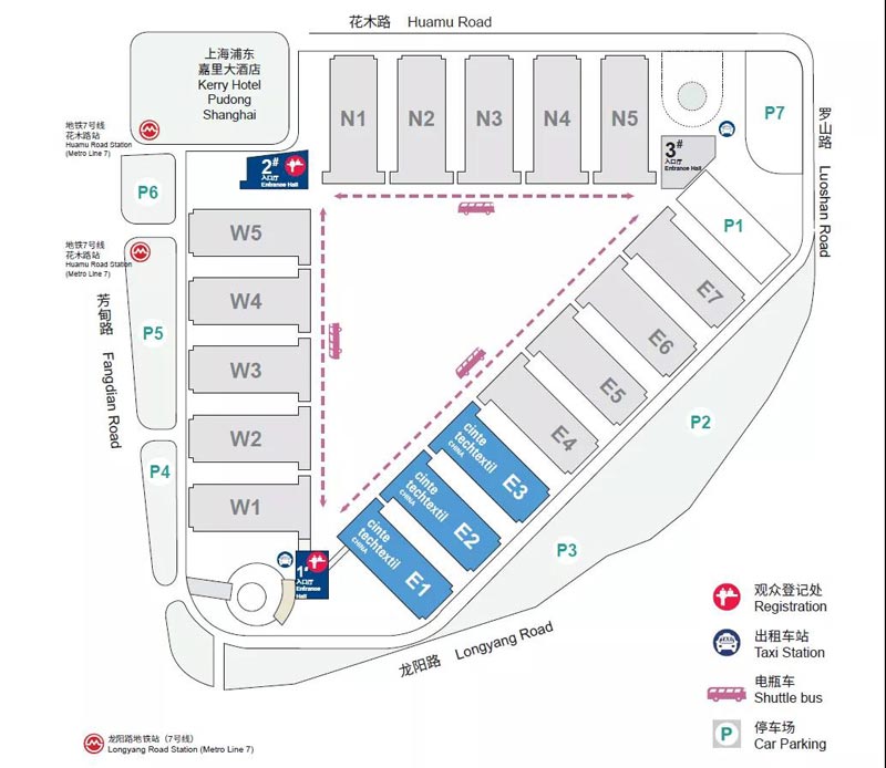 請參展商從(cong) 展館南大廳(1 號大廳)進入並辦理報到手續。