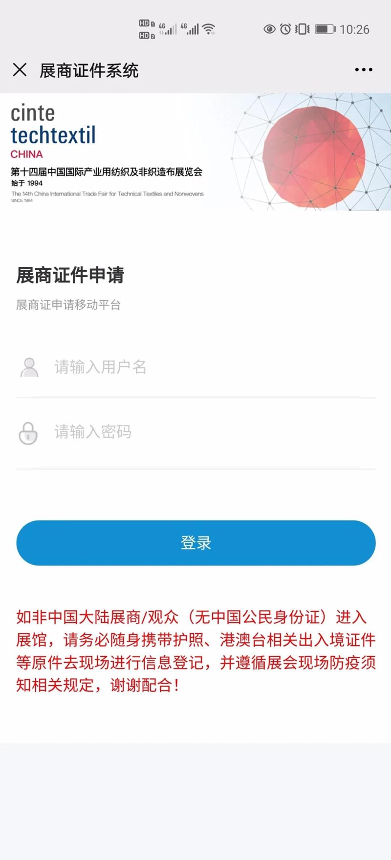 * 本屆展會(hui) 入館將采取刷身份證+人臉識別雙重核驗方法,故請務必隨身攜帶本人身份證原件,以上三項缺一不可。