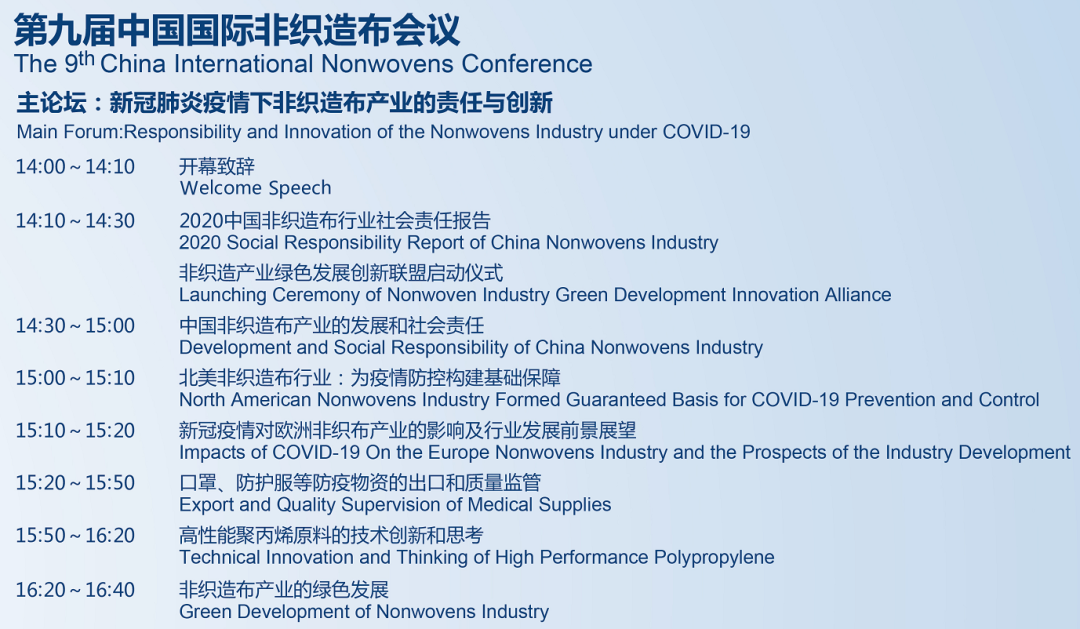 中國國際非織造布會(hui) 議日程