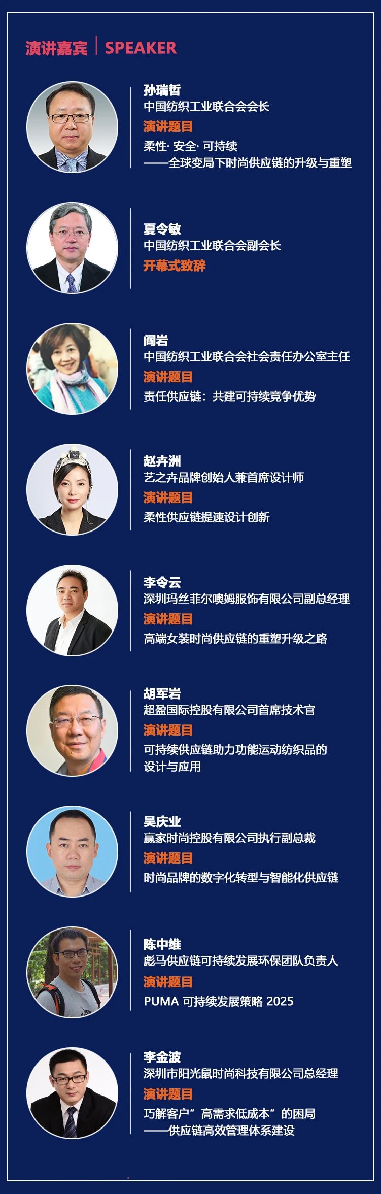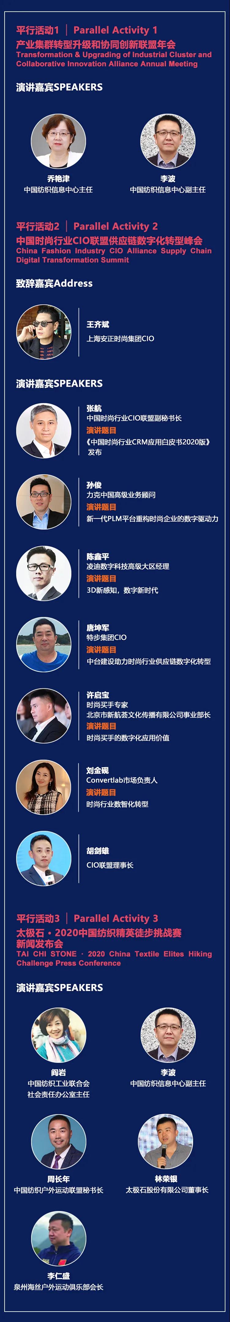 大會(hui) 邀請國內(nei) 紡織服裝行業(ye) 大咖,與(yu) 您一同探討時下麵臨(lin) 的難點、困局,為(wei) 您解惑未來行業(ye) 發展趨勢。