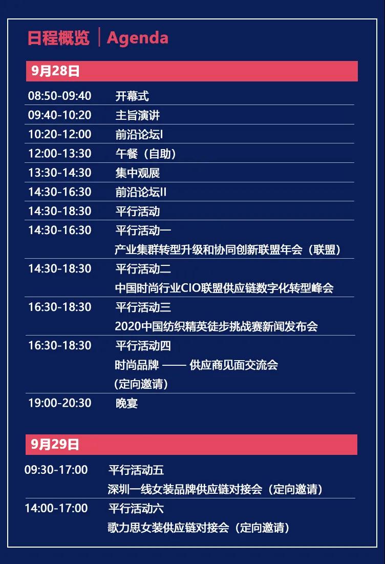 第十三屆全球紡織服裝供應鏈大會(hui) 將於(yu) 9月28-29日在深圳大浪舉(ju) 辦,大會(hui) 將以主旨演講、前沿論壇、平行活動、供應鏈對接會(hui) 等多元化活動,圍繞大會(hui) 主題展開探討、交流!