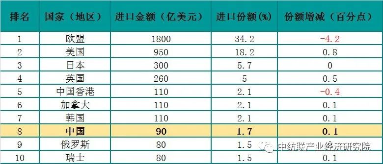 由於(yu) 英國退出歐盟單獨統計,且其紡織品服裝進出口規模較大,故個(ge) 別國家被英國替代未能進入榜單。英國是歐洲地區重要的消費市場,分別位列紡織品進口第7名、服裝進口第4名;英國位列服裝出口第8名。