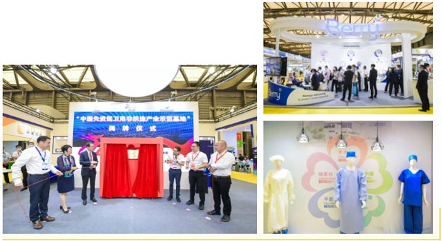 今年的疫情使貝裏國際集團聲名遠播,在南海展區最亮眼的地帶,貝裏國際展出了采用特殊花紋和RF5最新技術實現的一次性涮手衣材料以及DuraMed專(zhuan) 利技術醫療包裝材料、Berry口罩、AAMI 4級別透氣病毒阻隔手術衣等差異化產(chan) 品。公司負責人對幾款最新產(chan) 品進行了介紹:Berry口罩采用三層防護結構,輕薄透氣,貼合不勒耳,親(qin) 膚不過敏,通過細胞毒性測試,中間層采用Berry獨有的駐極工藝生產(chan) 的熔噴無紡布,高效低阻,有著優(you) 秀的透氣性,內(nei) 外兩(liang) 層無紡布可選用Berry最新的R5柔軟紡粘產(chan) 品,貼膚舒適。AAMI 4級別透氣病毒阻隔手術衣是一種非織造複合材料,能夠提供優(you) 越的舒適性和血液病菌阻隔性能。此外,公司還展示了AdvancedLoft 高蓬鬆棉感柔軟無紡布(布卷樣品為(wei) 18g)。該樣品采用 Berry 專(zhuan) 利技術以及最先進的萊芬 5 並列型雙組份高蓬鬆柔軟技術平台(全國首個(ge) 能夠商業(ye) 化生產(chan) 一旦尼爾以下纖維的丙綸紡粘無紡布生產(chan) 線),為(wei) 消費者提供極致舒適體(ti) 驗,適用於(yu) 嬰兒(er) 紙尿褲、成人失禁和女性衛生用品。