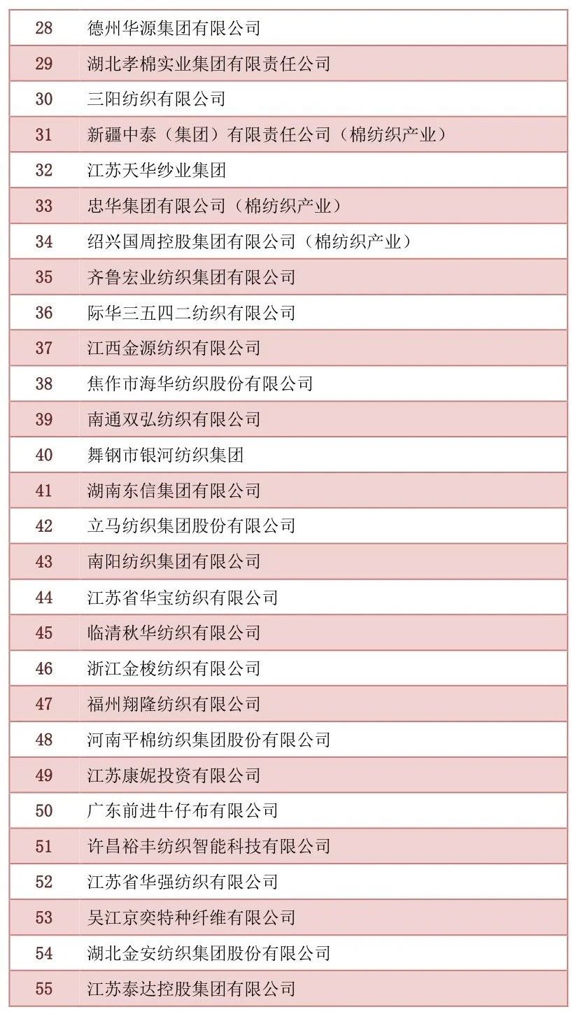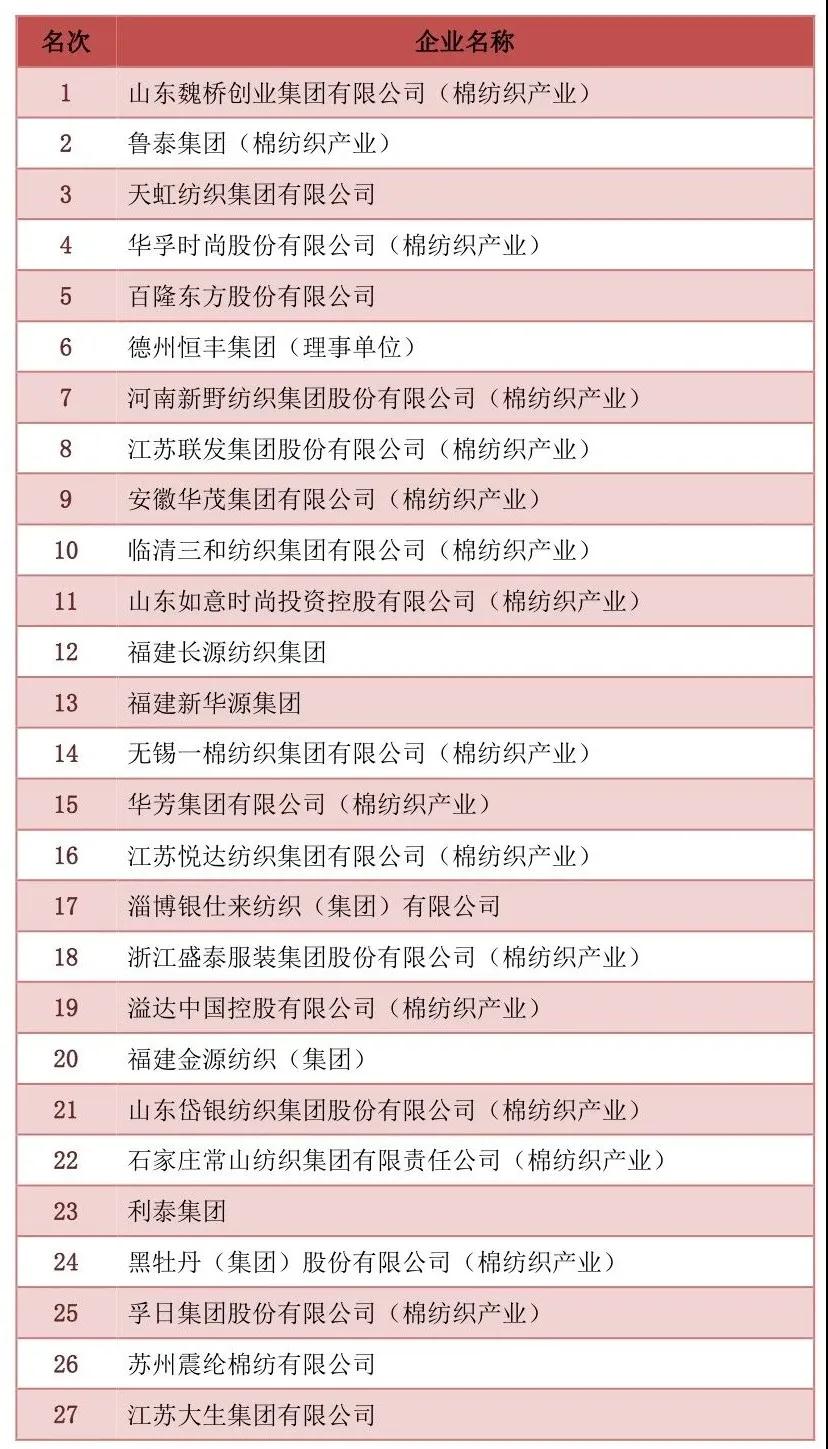 2020年10月27日,由中國棉紡織行業(ye) 協會(hui) 主辦的“2019年全國棉紡織行業(ye) 競爭(zheng) 力排名”百強企業(ye) 和優(you) 良發展型企業(ye) 排名結果在當日召開的信息統計專(zhuan) 業(ye) 委員會(hui) 視頻會(hui) 議上正式發布。