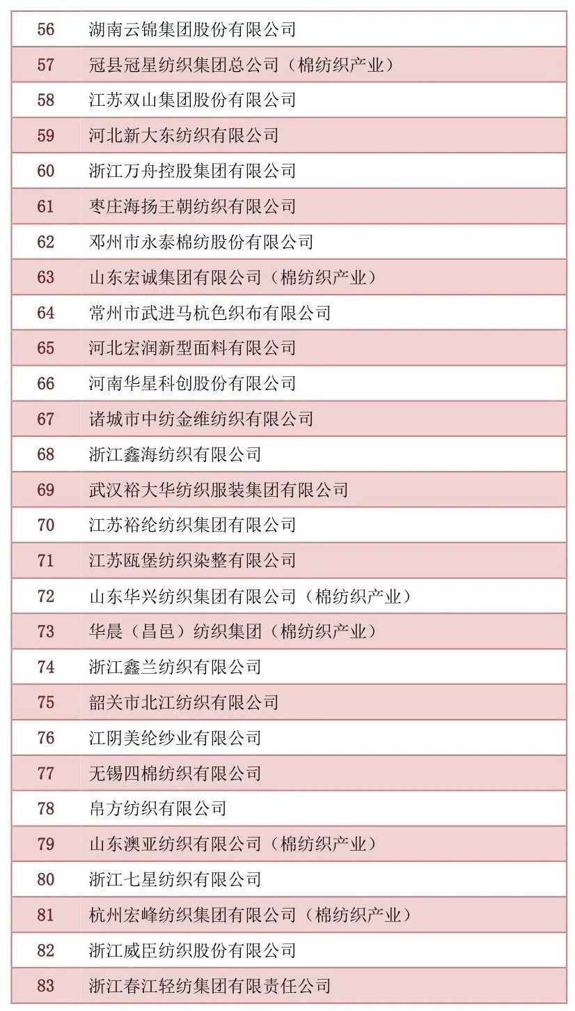 2019年全國棉紡織行業(ye) 競爭(zheng) 力百強企業(ye) 名單