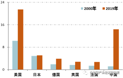 圖2:世界主要國家GDP(單位:萬(wan) 億(yi) 美元)