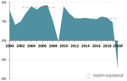 圖3:2000~2020年世界GDP同比增長情況