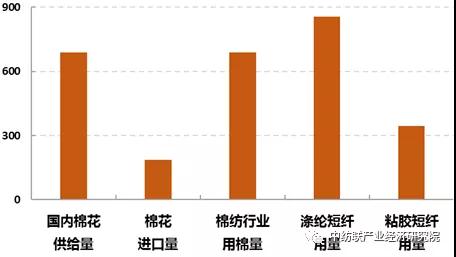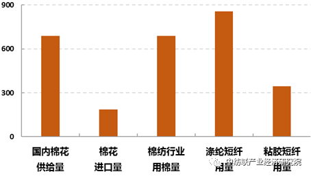 圖4: 2019年我國棉花供需及棉型纖維使用情況(萬(wan) 噸)