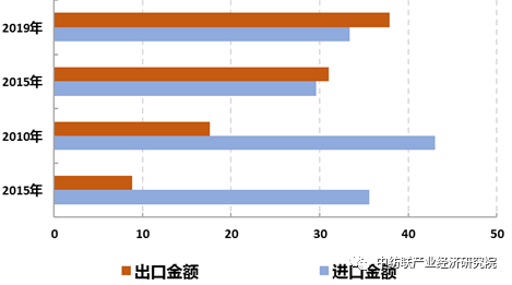 圖5: 我國紡機裝備進出口金額變化情況(億(yi) 美元)
