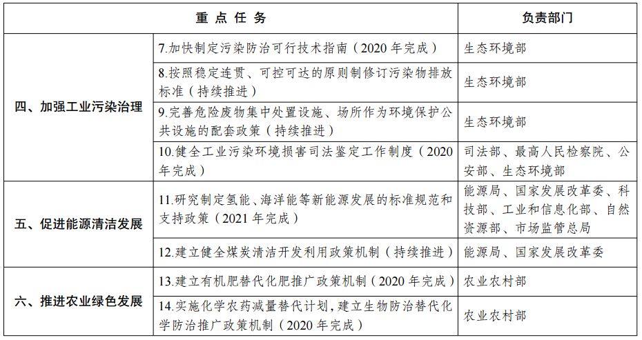 (六)加強工業(ye) 汙染治理。全麵推行汙染物排放許可製度,強化工業(ye) 企業(ye) 汙染防治法定責任。加快製定汙染防治可行技術指南,按照穩定連貫、可控可達的原則製修訂汙染物排放標準,嚴(yan) 格環境保護執法監督,實現工業(ye) 汙染源全麵達標排放,鼓勵達標企業(ye) 實施深度治理。完善危險廢物集中處置設施、場所作為(wei) 環境保護公共設施的配套政策。建立健全責任清晰、程序合理、科學規範的生態環境突發事件預警和應急機製,建立生態環境突發事件後評估機製。健全工業(ye) 汙染環境損害司法鑒定工作製度,建立完善行政管理機關(guan) 、行政執法機關(guan) 與(yu) 監察機關(guan) 、司法機關(guan) 的銜接配合機製,促進工業(ye) 汙染治理領域處罰信息和監測信息共享,充分發揮檢察機關(guan) 公益職能作用,形成工業(ye) 汙染治理多元化格局。(最高人民法院、最高人民檢察院、公安部、司法部、生態環境部、工業(ye) 和信息化部、國家發展改革委、財政部等按職責分工負責)