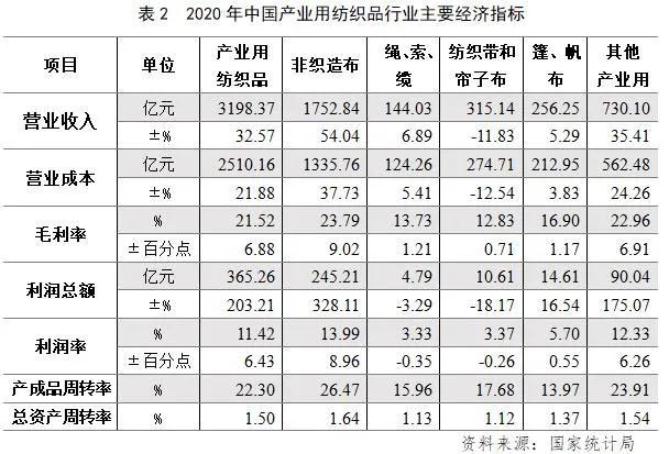 2020年產(chan) 業(ye) 用紡織品行業(ye) 經濟運行情況