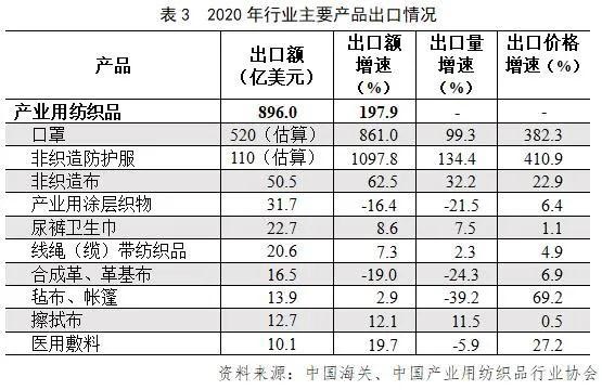 根據中國海關(guan) 數據,2020年我國出口各類產(chan) 業(ye) 用紡織品(非全口徑)價(jia) 值896億(yi) 美元,同比增長197.9%。
