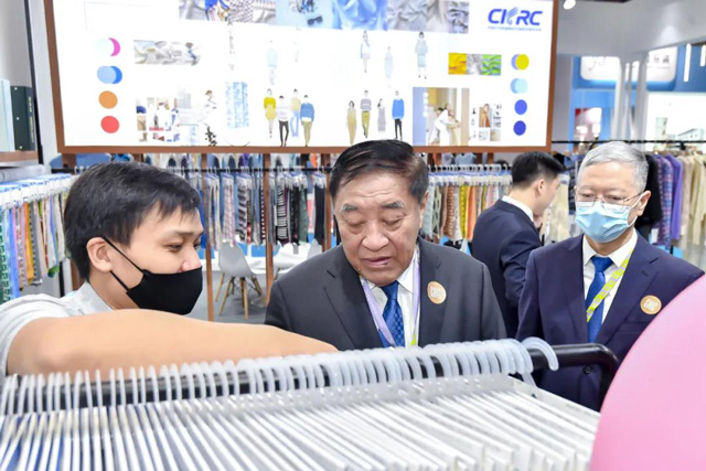 中國紡織工業(ye) 聯合會(hui) 原會(hui) 長王天凱,副會(hui) 長夏令敏,原副會(hui) 長楊紀朝,中國紡織服裝教育學會(hui) 常務副會(hui) 長倪陽生等領導及嘉賓,在中國伟德国际英国工業(ye) 協會(hui) 會(hui) 長林雲(yun) 峰、副會(hui) 長瞿靜等主辦方領導的陪同下參觀了展會(hui) 。
