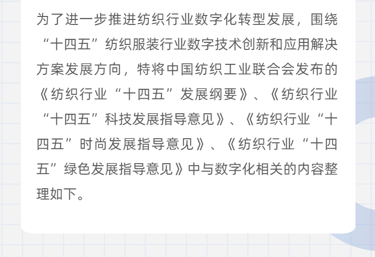 您現在的位置是:首頁 > 要聞 紡織行業數字化轉型:“十四五”綱要怎麽說 來源:中家紡 發布日期:2021-10-28 字體: 【小】 【中】 【大】 分享: 熱門文章: 2025intertextile春夏 | “友禮”同享齊觀展... [2025-02-19] 2024年我國紡織行業經濟運行總體平穩 [2025-02-17] 聚焦綠色智慧融合 展示產業用紡織品新趨勢 [2025-02-11] 響應政策 落實服務 | PH Value義烏展全力“備戰”中 [2025-02-11] 【亮星季】第一期正式開啟 | 商貿先行,品質好禮享不停 [2025-02-10] 展會直通車