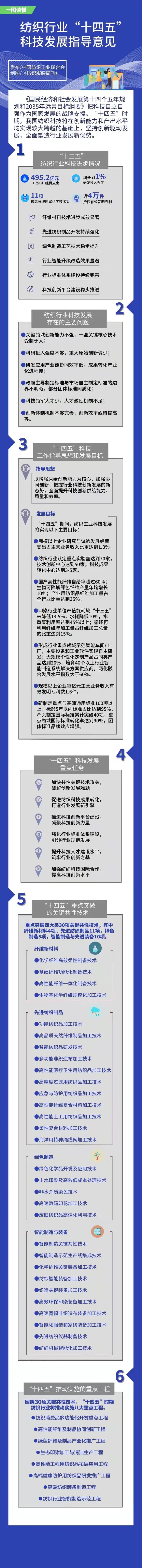 您現在的位置是:首頁 > 要聞 一圖讀懂 | 紡織行業“十四五”《科技、時尚、綠色發展指導意見》之科技篇 來源:紡織服裝周刊 發布日期:2021-11-15 字體: 【小】 【中】 【大】 科技篇 2021年6月,中國紡織工業(ye) 聯合會(hui) 發布了《紡織行業(ye) “十四五”發展綱要》及《科技、時尚、綠色發展指導意見》。“十四五”時期,我國紡織科技將在創新能力和產(chan) 出水平均實現較大跨越的基礎上,堅持創新驅動發展,全麵塑造行業(ye) 發展新優(you) 勢。 分享: 熱門文章: 2025intertextile春夏 | “友禮”同享齊觀展... [2025-02-19] 2024年我國紡織行業經濟運行總體平穩 [2025-02-17] 聚焦綠色智慧融合 展示產業用紡織品新趨勢 [2025-02-11] 響應政策 落實服務 | PH Value義烏展全力“備戰”中 [2025-02-11] 【亮星季】第一期正式開啟 | 商貿先行,品質好禮享不停 [2025-02-10] 展會直通車