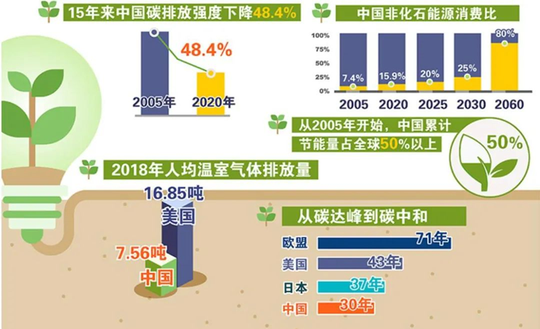 過去10年,中國淘汰1.2億(yi) 千瓦煤電落後裝機;過去15年,中國碳排放強度大幅超額完成2020年氣候行動目標。白皮書(shu) 提到,2020年中國碳排放強度比2005年下降48.4%,超額完成了中國向國際社會(hui) 承諾的到2020年下降40%-45%的目標,累計少排放二氧化碳約58億(yi) 噸,基本扭轉了二氧化碳排放快速增長的局麵。此外,中國還持續鞏固提升生態係統碳匯能力,是全球森林資源增長最多和人工造林麵積最大的國家,成為(wei) 全球“增綠”的主力軍(jun) 。