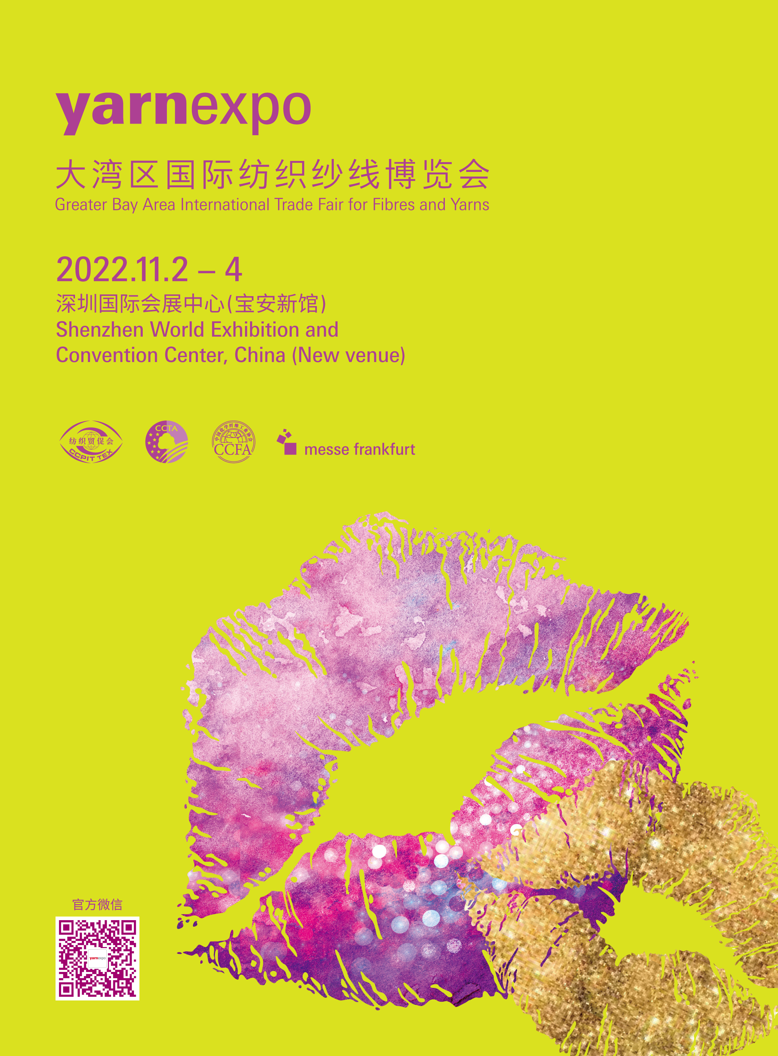 2022yarnexpo大灣區紗線展將於11月2-4日在深圳國際會展中心(寶安新館)與intertextile麵輔料展(大灣區)、CHIC時尚展(大灣區)、PH Value伟德国际英国展(大灣區)同期同地舉辦,充分發揮聯展品牌優勢和一站式商貿優勢,為參展企業高效融入粵港澳大灣區高質量紡織產業鏈體係,共享灣區快速發展機遇、政策紅利以及輻射全國、覆蓋全球的"海陸空鐵"立體通關物流網絡和鄰近RCEP新興市場等區位優勢,提供俱佳平台。