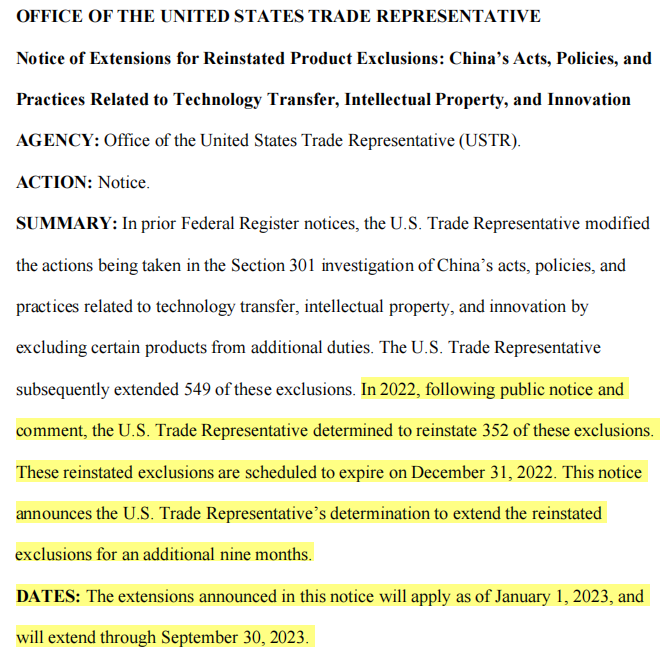 節選自USTR公告原文