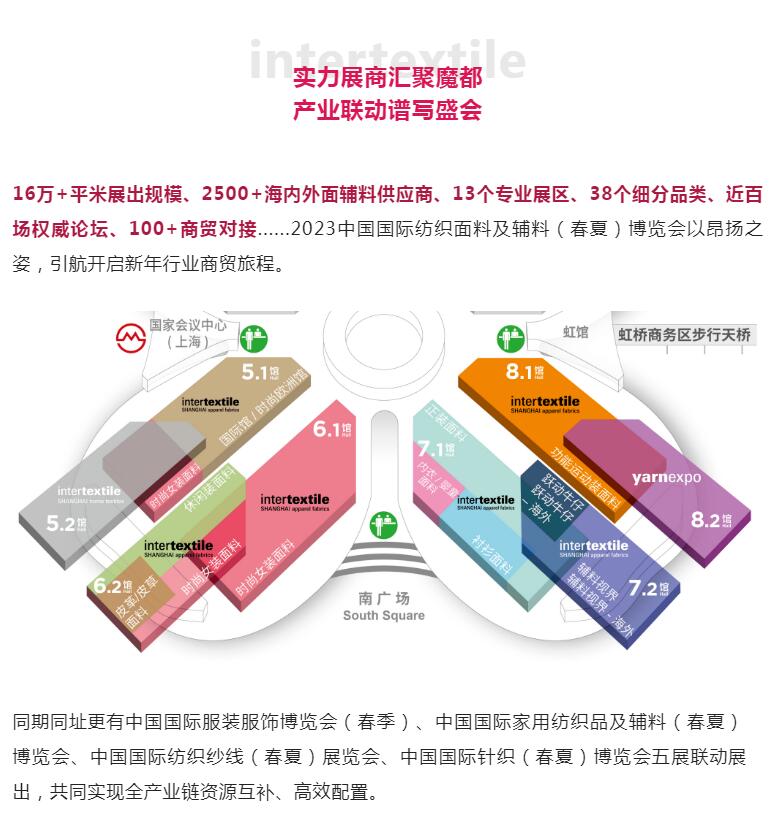 商務部有關(guan) 負責人在近期新聞發布上表示要全麵恢複實體(ti) 展,落實1月28日國務院常務會(hui) 議部署,推動國內(nei) 貿易展會(hui) 全麵恢複線下展。近期,上海市人民政府印發《上海市提信心擴需求穩增長促發展行動方案》,也提出全麵激活文旅市場和支持會(hui) 展行業(ye) 恢複重振。開年以來,從(cong) 中央到地方,各類促貿易、穩經濟的一攬子政策和實施措施接續出台,強調貿易促進、供需暢通,也讓紡織服裝行業(ye) 開年以滿滿信心重新步入了發展快車道。