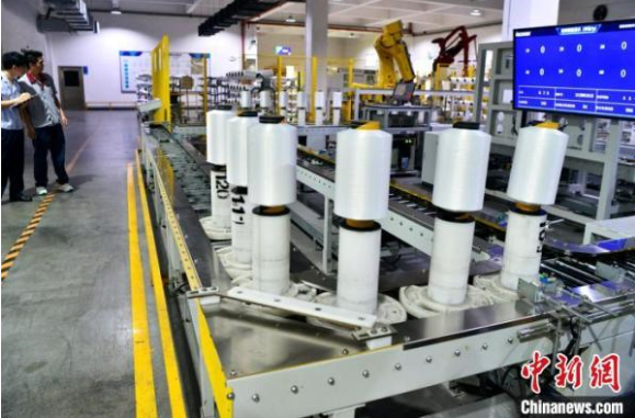 5月31日,在福建省福州市長樂(le) 區一家化纖紡織企業(ye) 智能車間內(nei) ,機器人在生產(chan) 線上作業(ye) 。作為(wei) 國內(nei) 紡織產(chan) 業(ye) 重鎮,近年來,當地率先選擇紡織產(chan) 業(ye) 開展工業(ye) 互聯網試點工作,充分利用技改基金擴容的政策紅利及落實稅費優(you) 惠政策,減輕企業(ye) 數字化轉型投資壓力。如今,傳(chuan) 統紡織“千人紗、萬(wan) 人布”的場景不再,紡織企業(ye) 的數字化應用、智能化改造全麵鋪開。目前,福州紡織業(ye) 已打造13個(ge) 省級以上數字化智能化試點示範項目,有500多家紡織企業(ye) 、9000多台設備上雲(yun) 上平台,幫助企業(ye) 平均減少60%以上的一線操作人員,節約能耗20%。