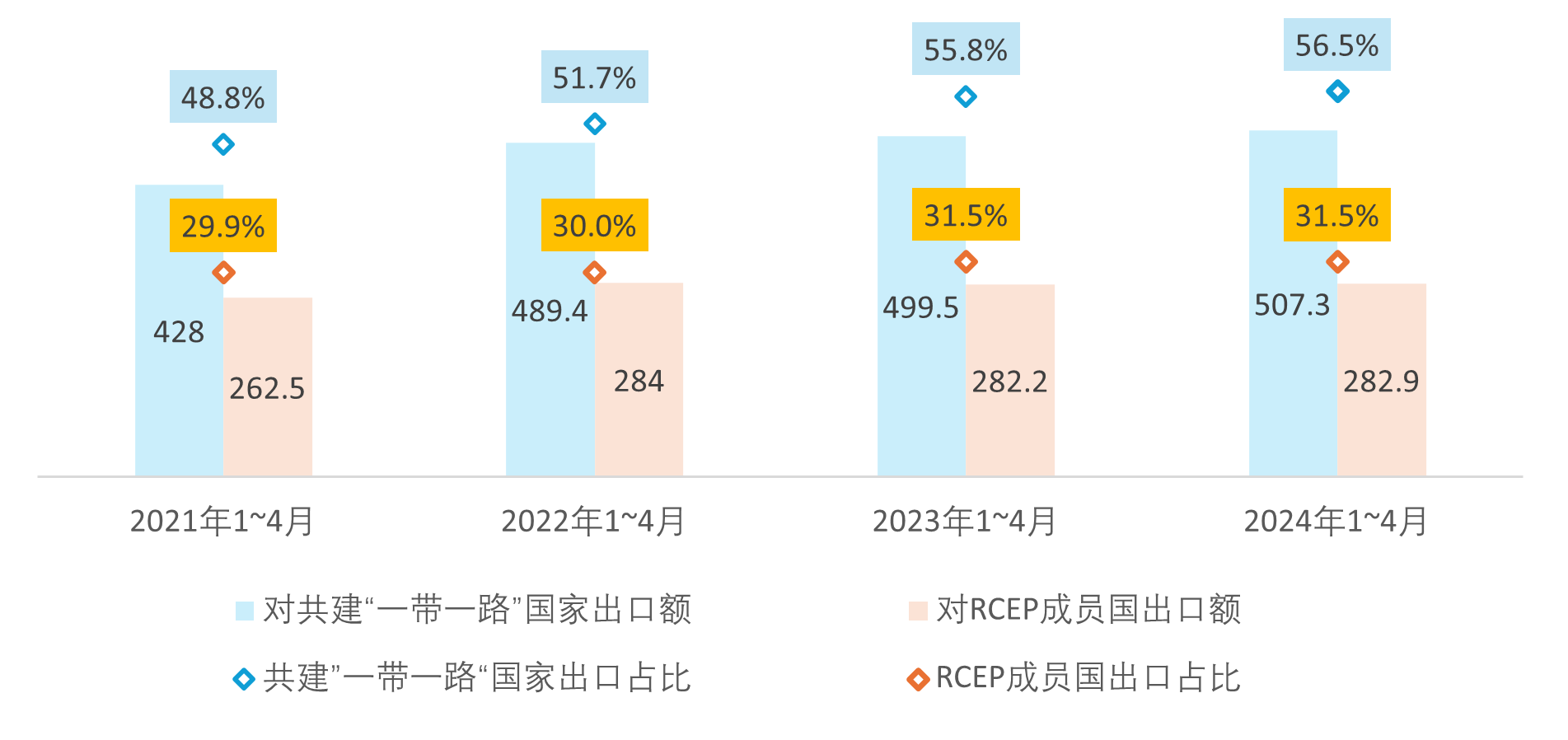 圖2 我國對共建“一帶一路”國家和RCEP成員國