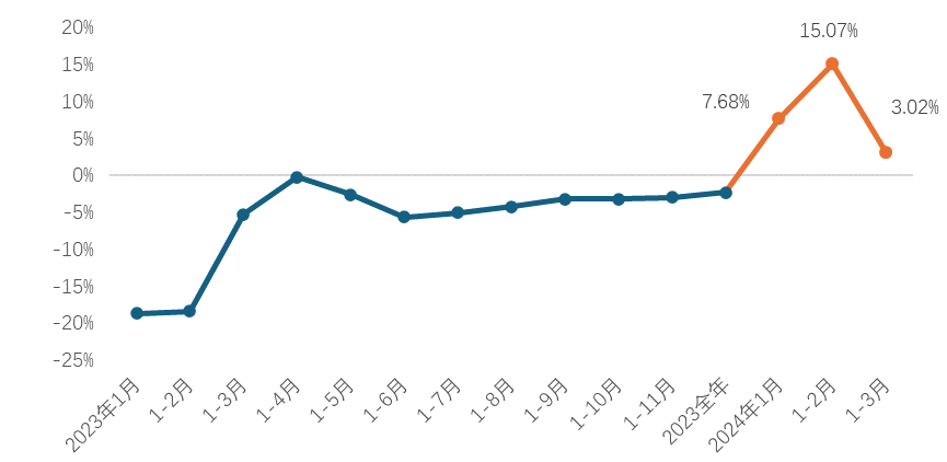 圖3. 2023年-2024年一季度我國家紡產(chan) 品出口額增速