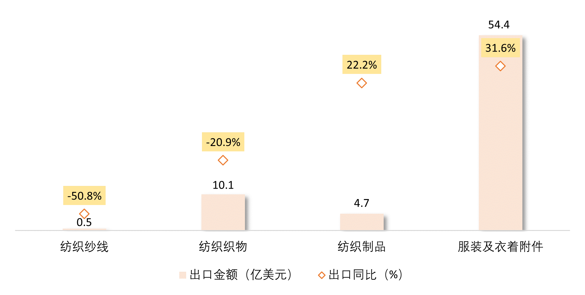 紡織品出口額有所下降