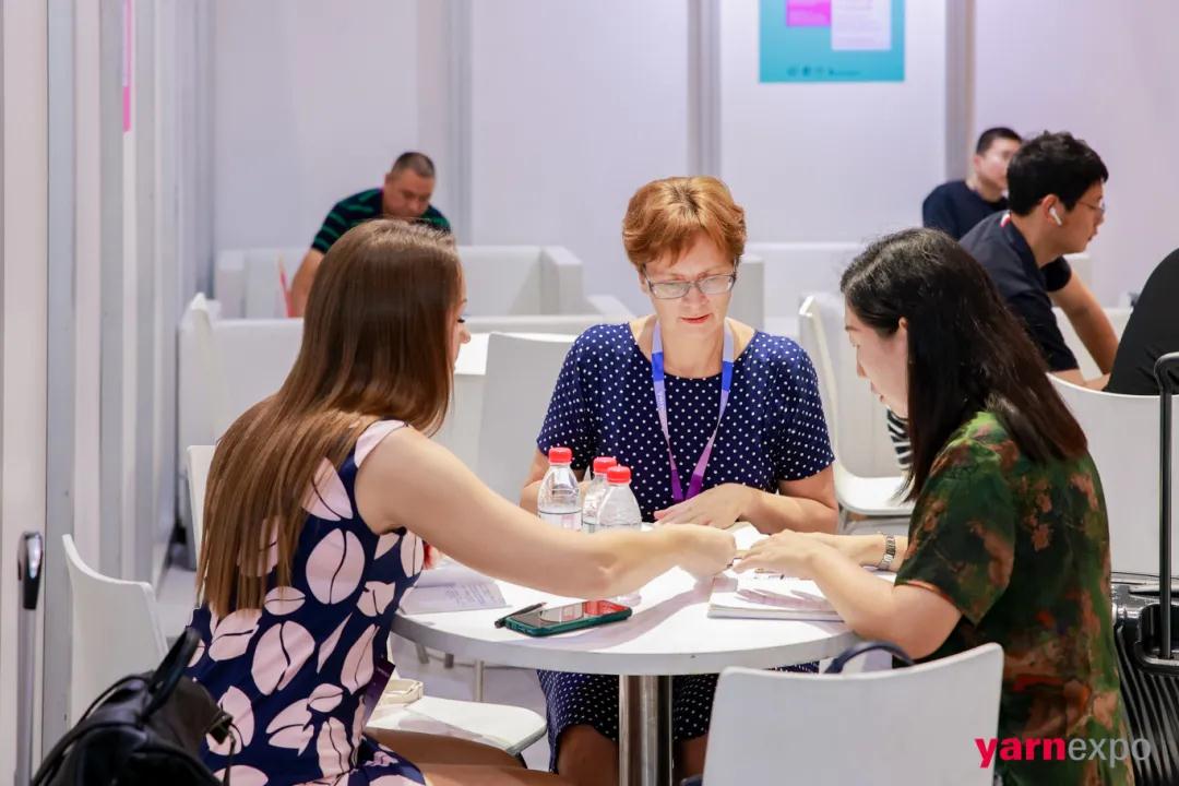2024yarnexpo秋冬紗線展持續為(wei) 展商和專(zhuan) 業(ye) 買(mai) 家提供精準商貿服務,通過多元化對接方式,為(wei) 展商提供展會(hui) 現場專(zhuan) 屬商貿對接會(hui) 、貴賓買(mai) 家洽談區、雲(yun) 展小程序供需商機發布等服務。展會(hui) 期間百餘(yu) 組商貿匹配,以高頻次,高效率對接,為(wei) 買(mai) 家和展商帶來高階商貿服務。