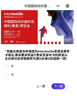 目前2025中國國際紡織麵料及輔料(春夏)博覽會觀眾預登記已經開啟。相應,2024-2026貴賓買家年卡2025年度第一輪申請也正式啟動。