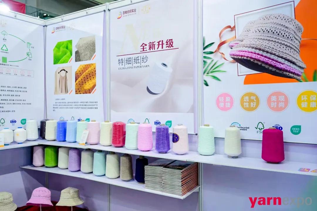 公司成立於(yu) 2010年,主要生產(chan) 紙紗及其深度加工產(chan) 品,如單股加撚紙紗,多股複合花式紗等,展會(hui) 上也重點展示了純紙紗(100%紙)以及混紡紙紗(20-60%紙)。據介紹,和紙紗是屬於(yu) 天然環保纖維材質範疇,安全、衛生;可快速堆肥降解,最快僅(jin) 2周,降解時無毒產(chan) 生,具備高度可持續性。和紙紗是一種輕盈柔軟的材料,質地非常輕盈,手感柔軟舒適重量僅(jin) 為(wei) 棉重的1/3;它的獨特之處在於(yu) 融合了和紙的純淨和絲(si) 線的光澤,給人一種雅致、清新的感覺,適用於(yu) 春夏服飾。